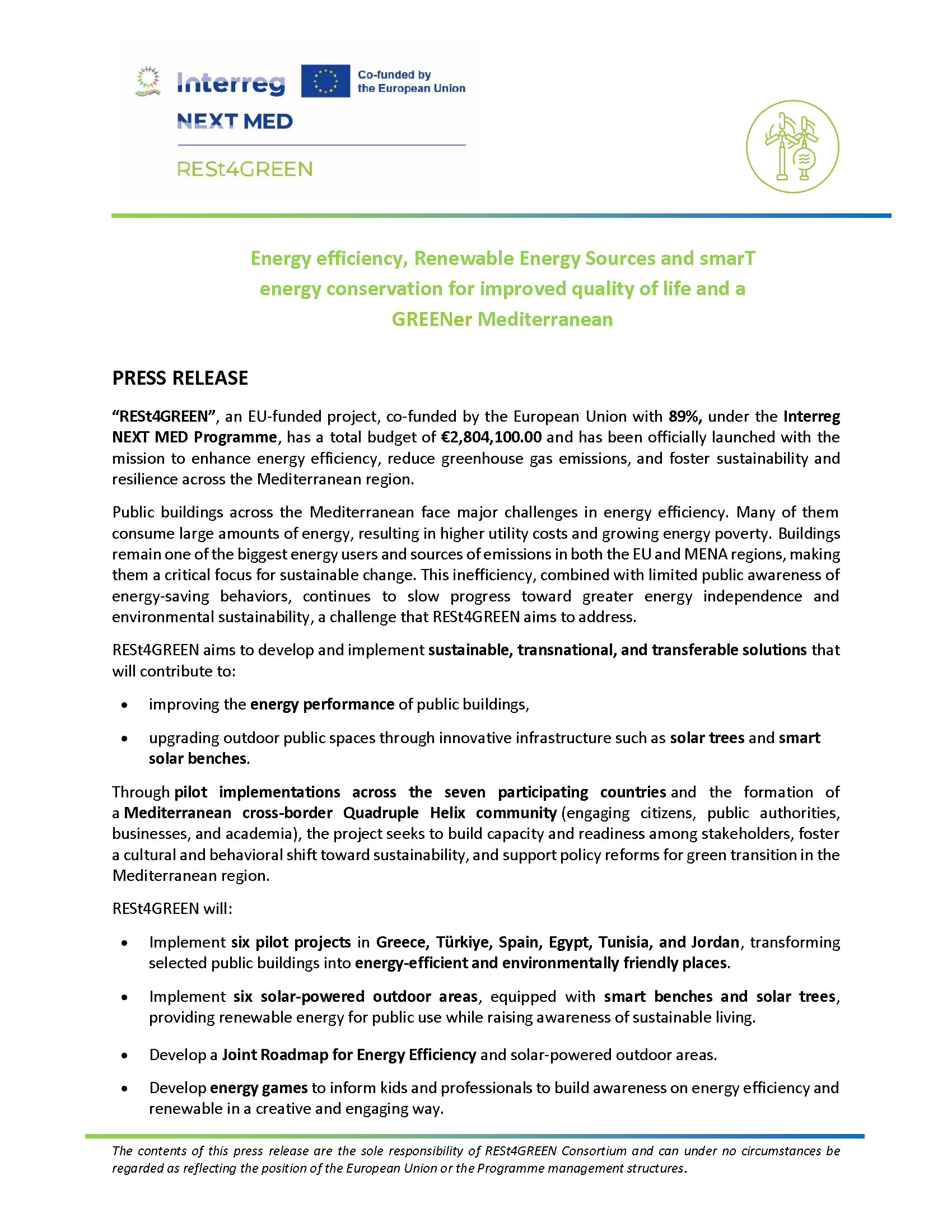 RESt4GREEN PRESS RELEASE